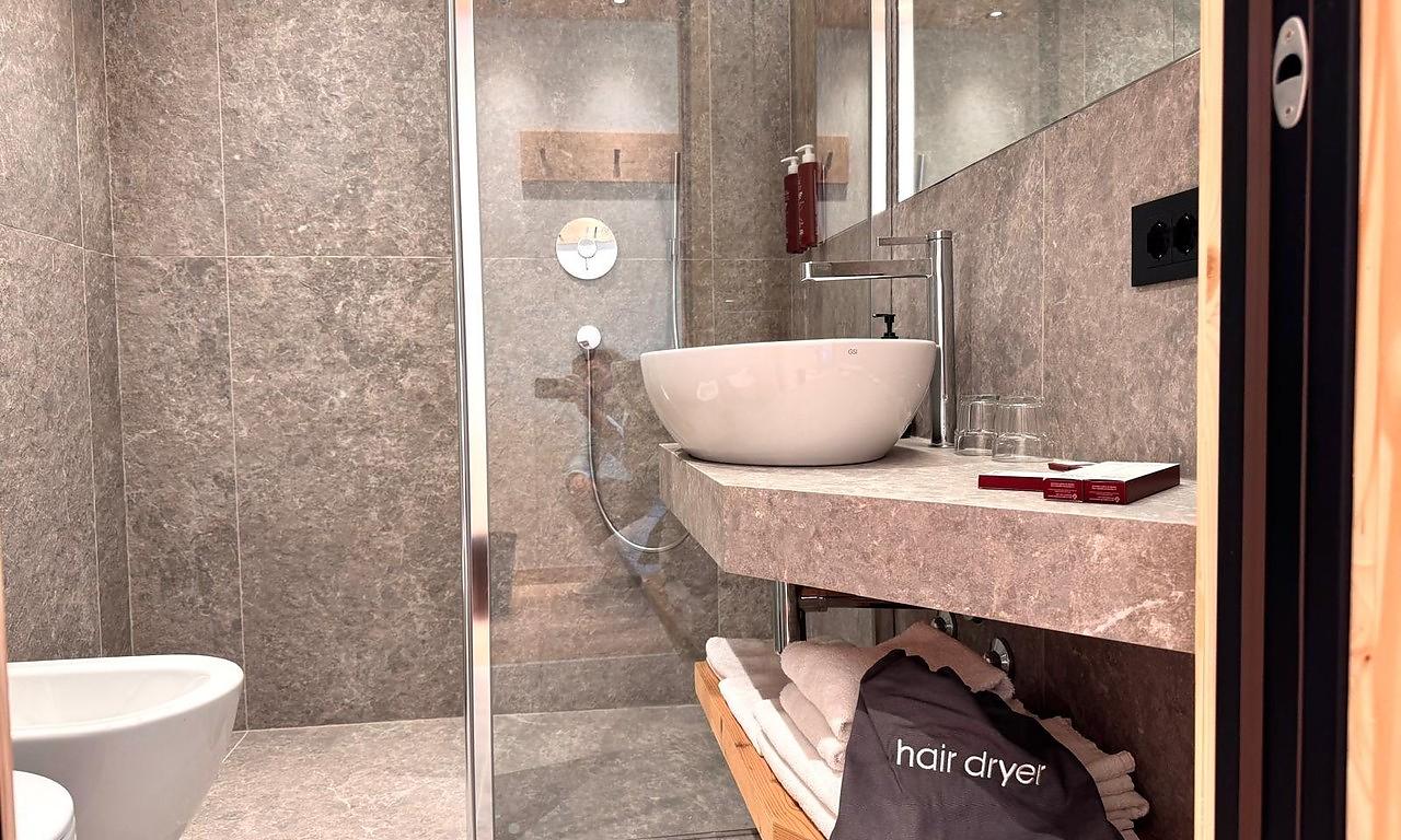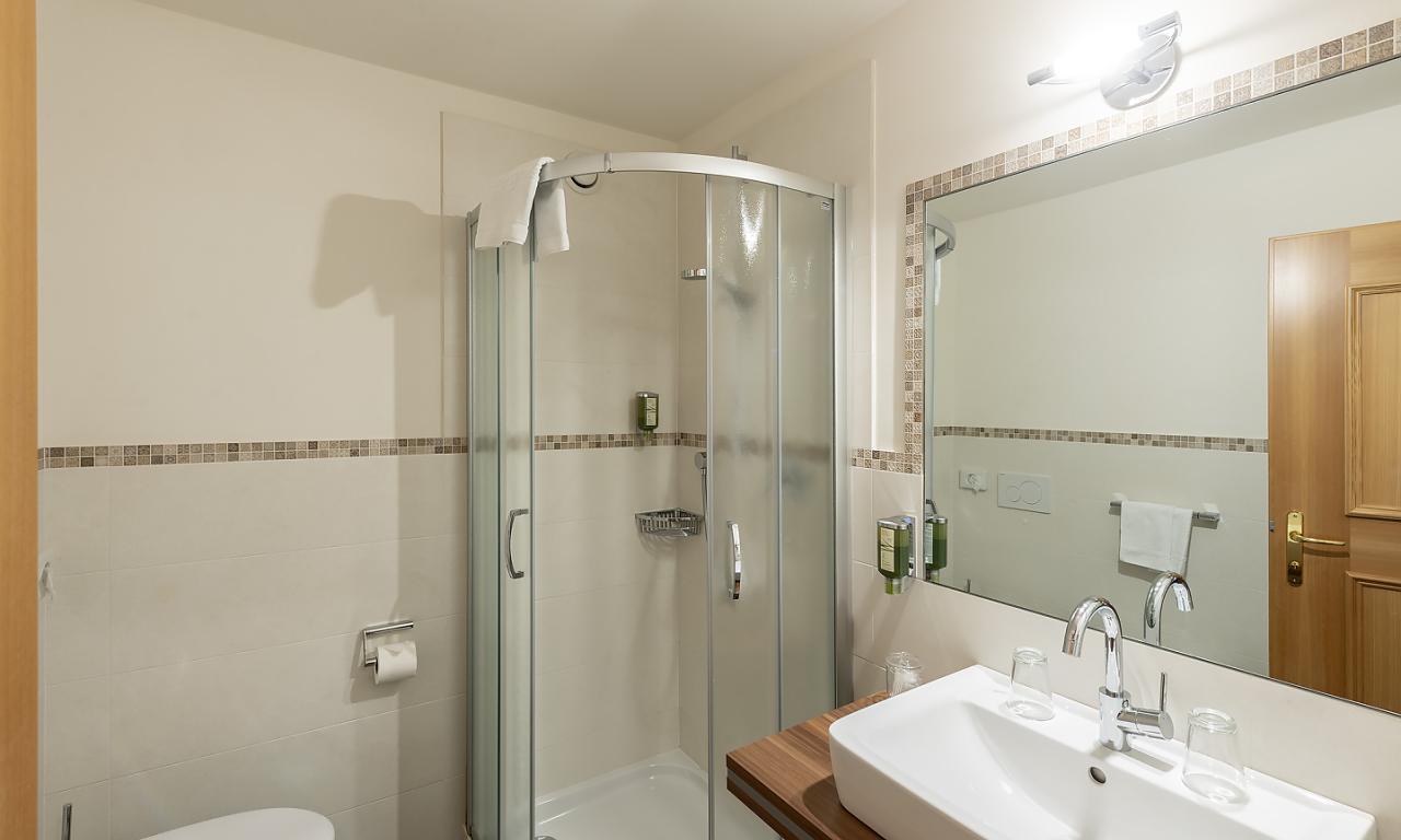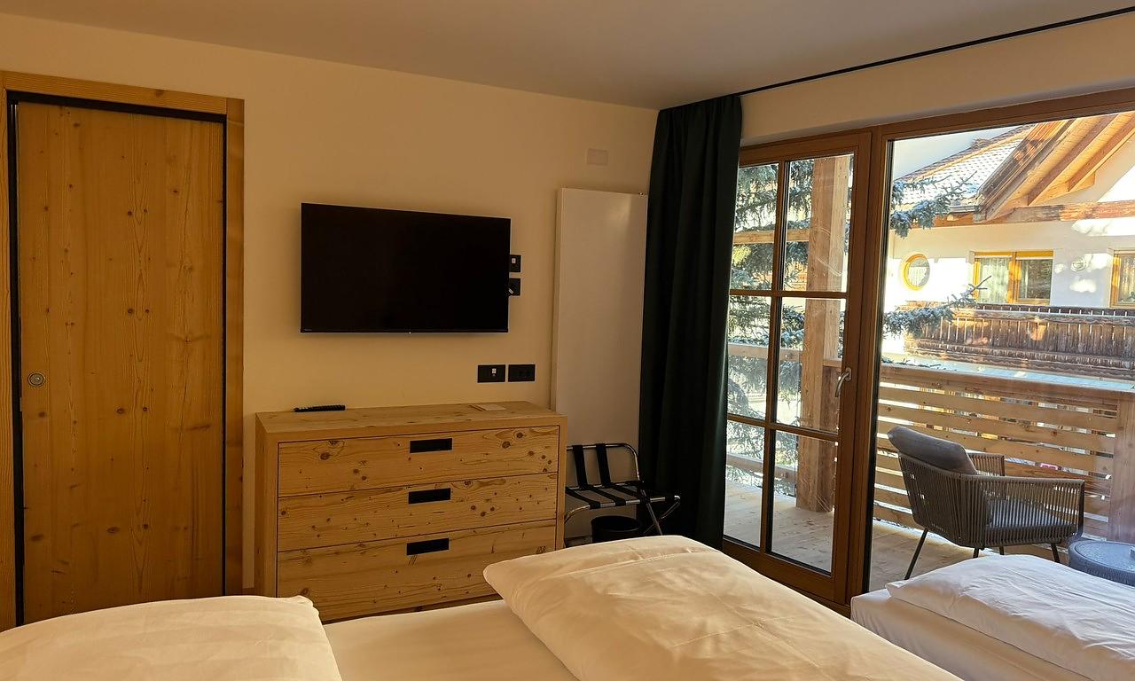 Room of approx. 20–22 m² with a double bed or two single beds and the possibility of adding a third bed. Balcony, flat-screen TV, Wi-Fi, telephone, and safe. Spacious bathroom with shower or bathtub, hairdryer. Wooden floor.